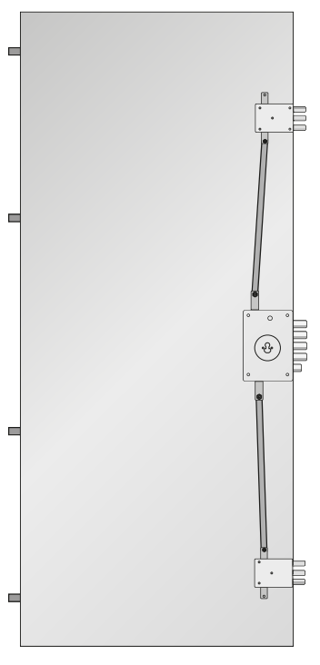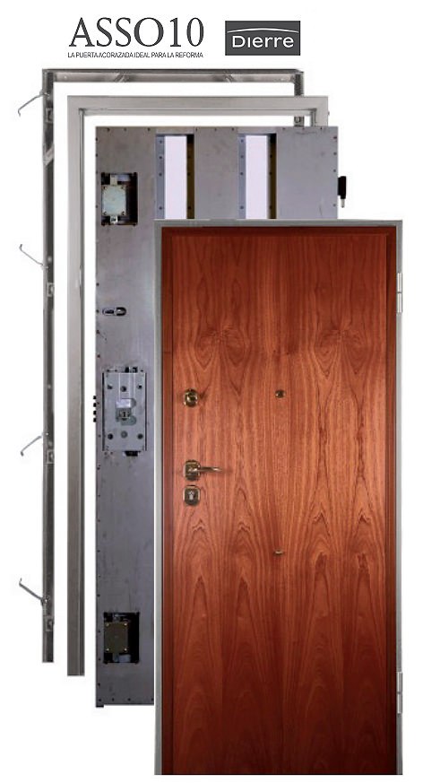 Cerradura: Multipunto de engranajes silenciosa y autoblocante con bulones de 40mm (18). Sistema desviadores sencillo.