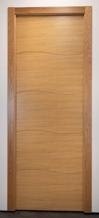 Nuestras puertas de línea moderna se pueden fabricar con interior alveolar o aglomerado de partículas y con frentes MDF rechapados.