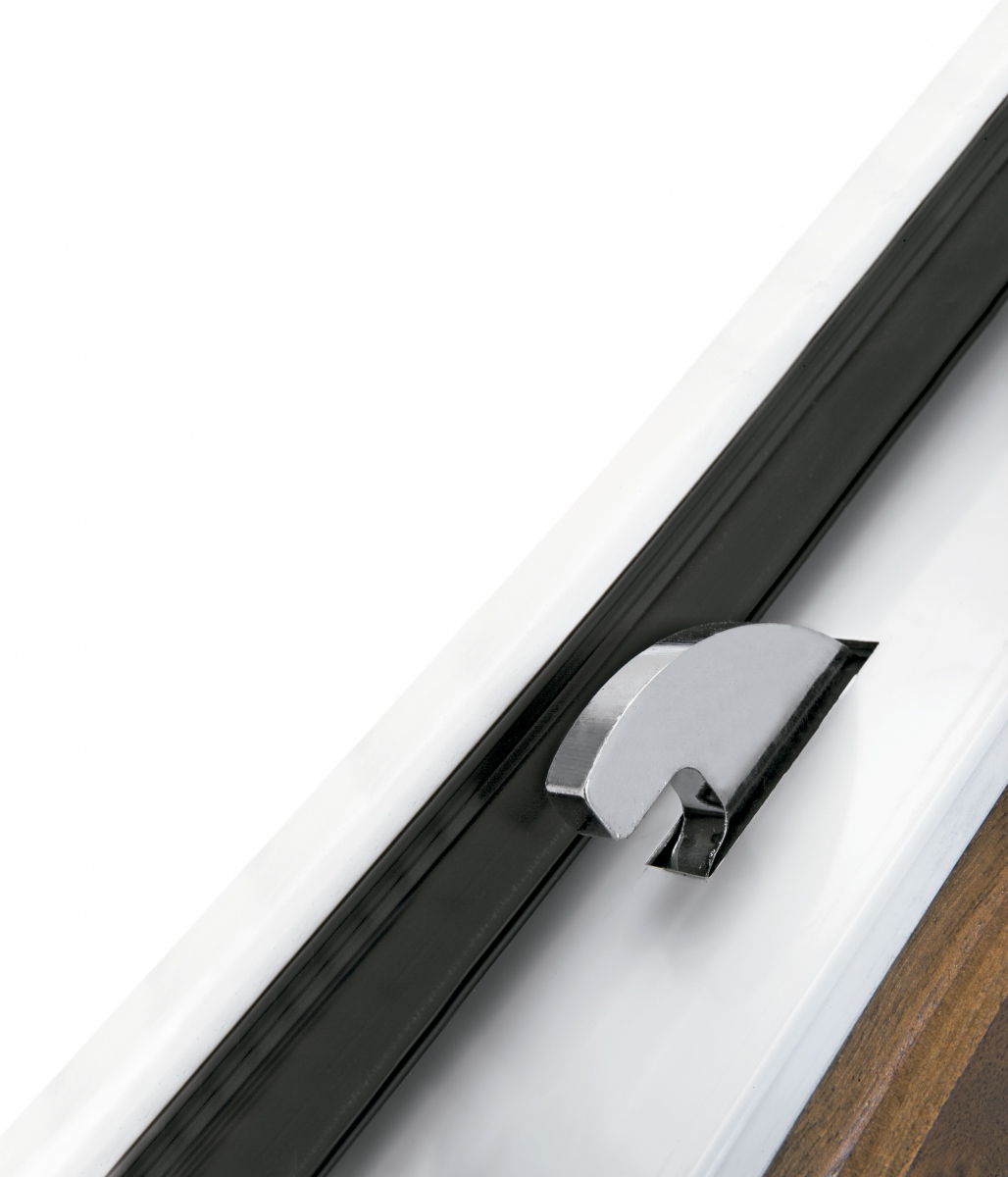 Cantoneras: Perfil “L” de acero revestido en vinilo para molduras de sujeción con guarnición.
